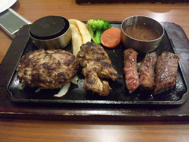 食べてみると ハンバーグ◎ チキン◎ ステーキ〇(味はいいのですが チト硬いかな)