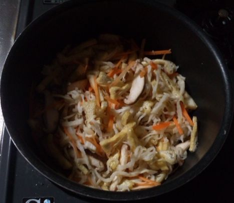 ③鍋に油をひき、材料全部炒めます。