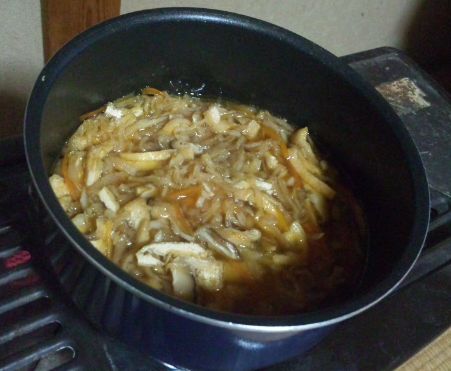 mikaryouri3.jpg④だし汁を入れて、煮立ったら、調味料◎を入れます。